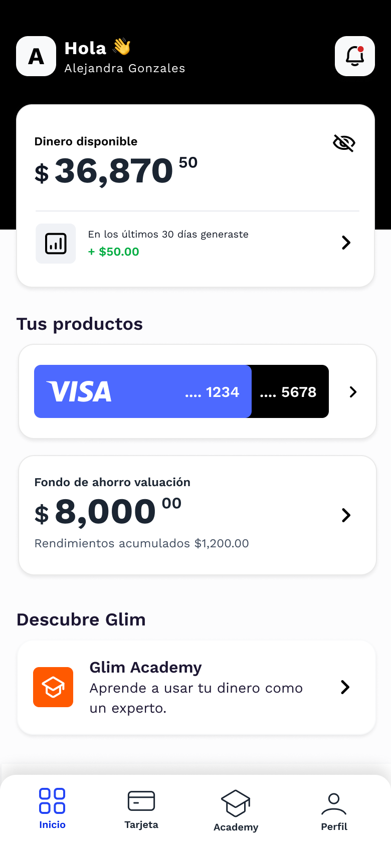 "La app de Glim está padrísima, bien fácil de usar. En minutos pude activar mi tarjeta y hacer mi primera compra. Me encanta tener todo a la mano."